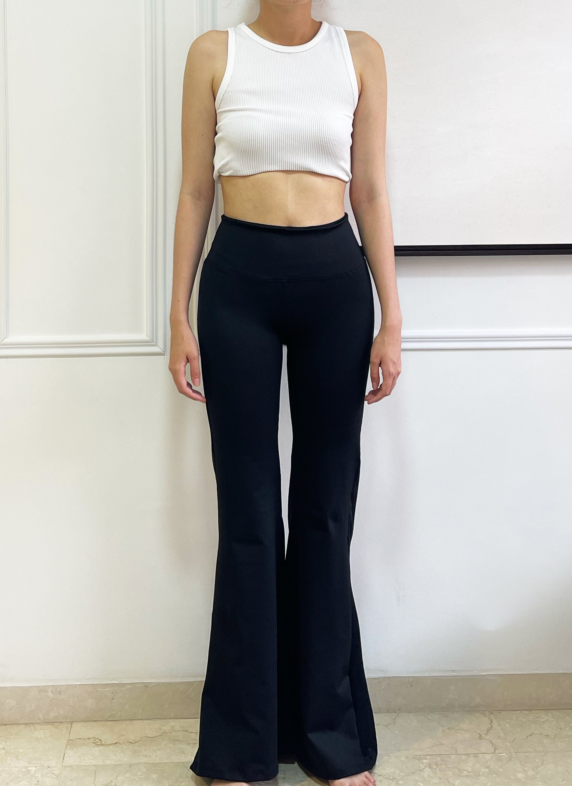 Pantalón negro bota extra ancha en Supplex de alta densidad. Pretina doble con control de abdomen y talle alto. Este pantalón es perfecto para el día a día o la transición del día a la noche.